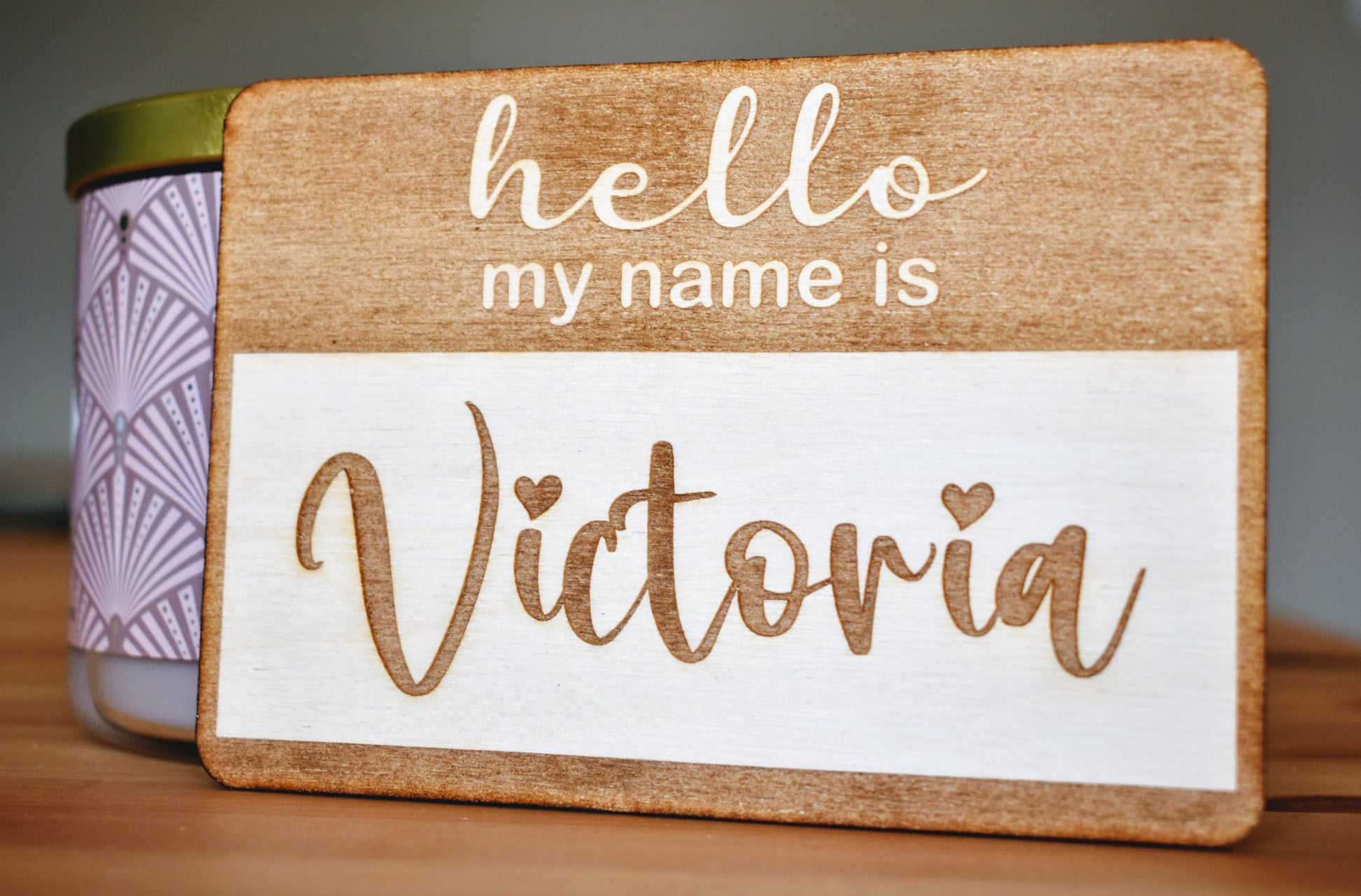 Beautiful wooden name tag made of high-quality 1/8" birch plywood, carefully cut and engraved with a high-precision laser and sanded smooth. This name tag is a great prop for taking photos of a baby. It also makes for a perfect baby shower gift.