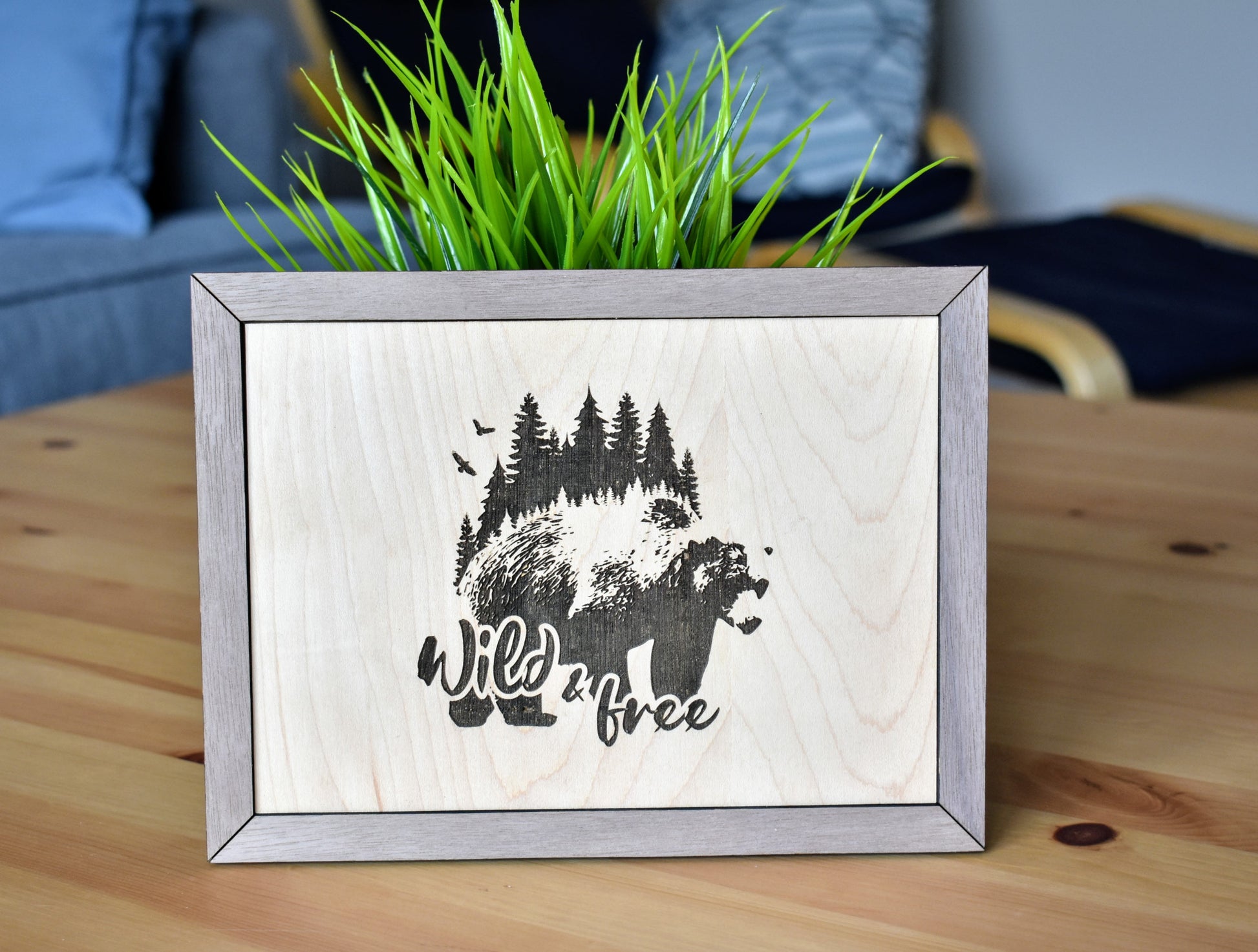 Beautiful decor sign made of high-quality maple plywood that is carefully laser engraved with our own Nature-inspired art design. The sign is nicely finished with a walnut frame. A mounting hole is provided for quick and easy installation.